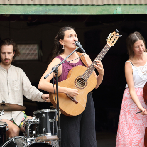 Elizamá singt, komponiert und harmonisiert ihren eigenen Klangkörper mit dem ihrer Gitarre. Wörter in deutscher Zunge, Saiten die springen, Holz klopft, verherzt, verkopft, kuschelig fordernd. Zugegebenermaßen mal mehr, mal weniger wortschwanger, traumtänzerisch und dennoch dem Leben nah.